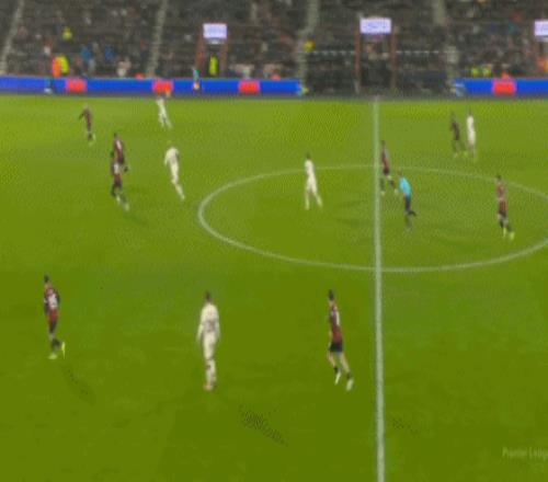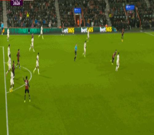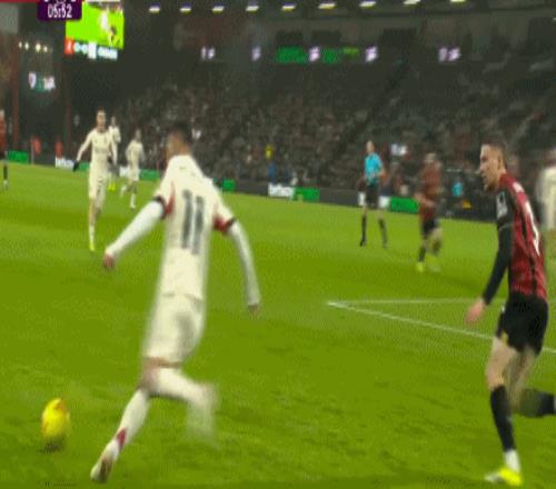 第33分钟,希尔送出直塞,希门尼斯推射穿裆入网!伯恩茅斯2-0利物浦